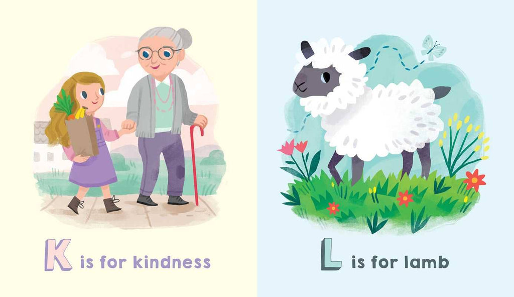 In this soft and beautiful book, children will learn the ABCs and introductory elements of the bible. Angels, church, olive branch, rainbow, vigil, and more are beautifully introduced. This sturdy board book is a great addition to a child's library.