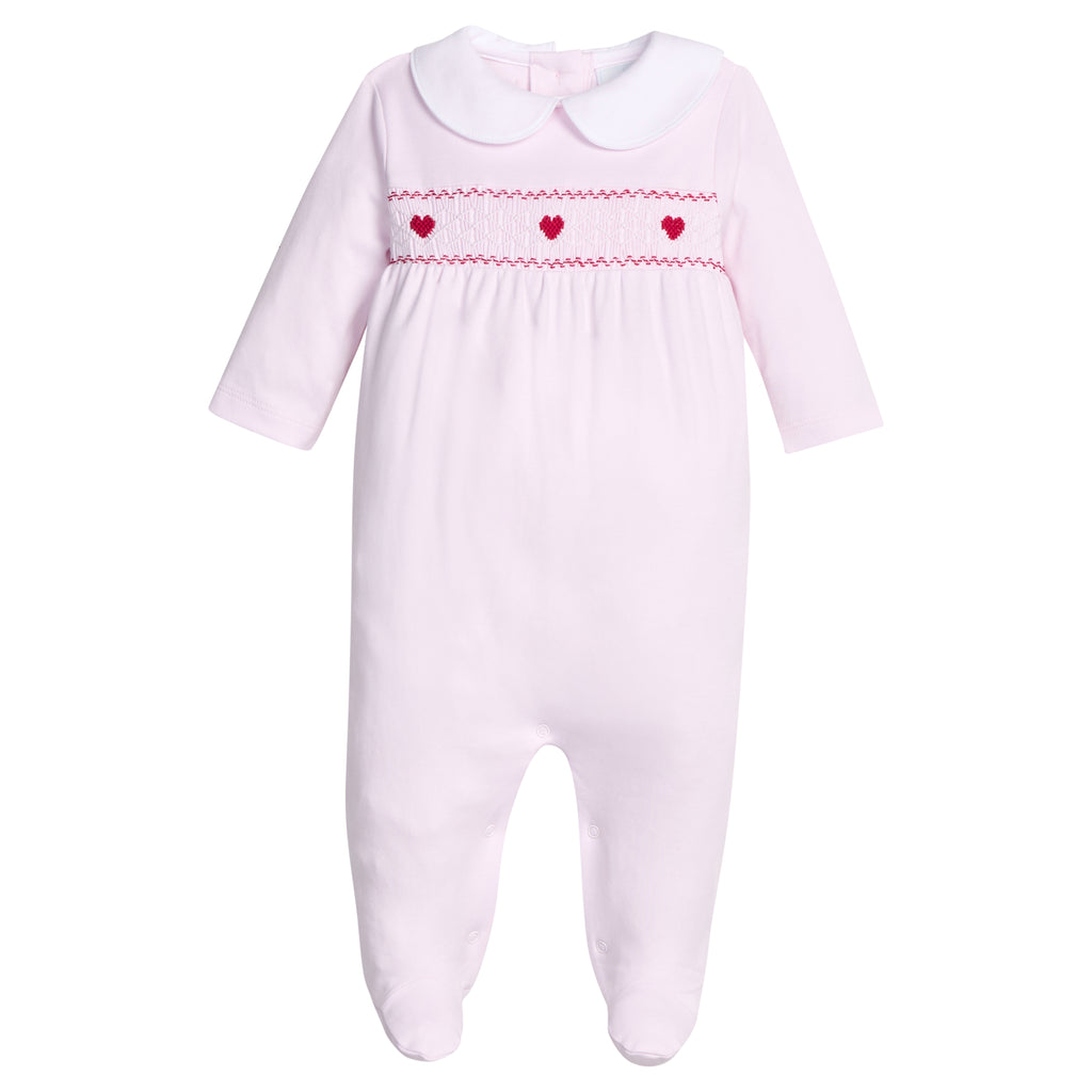 Little English Pale Pink Smocked Heart Footie